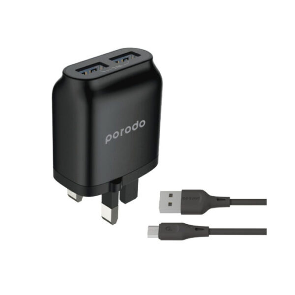 Porodo Dual USB Wall Charger 2.4A UK – Black